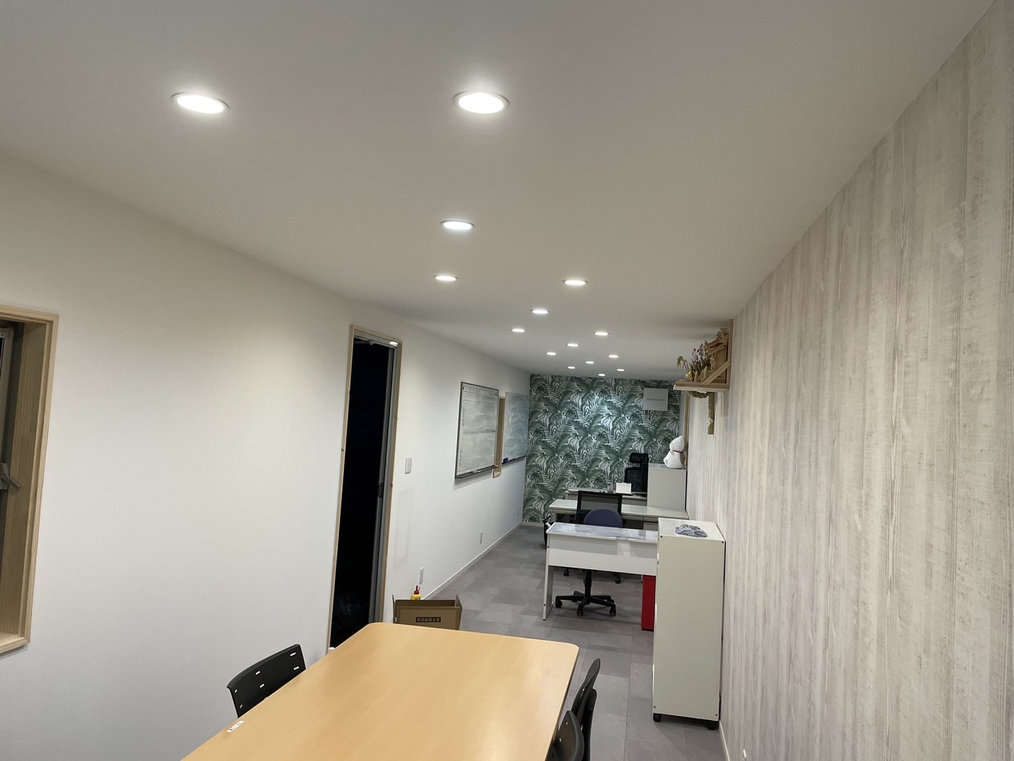 弊社の事務所にて、電気配線工事・内装仕上げ工事を行ないましたのでご紹介します。